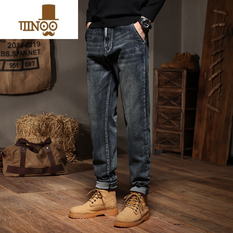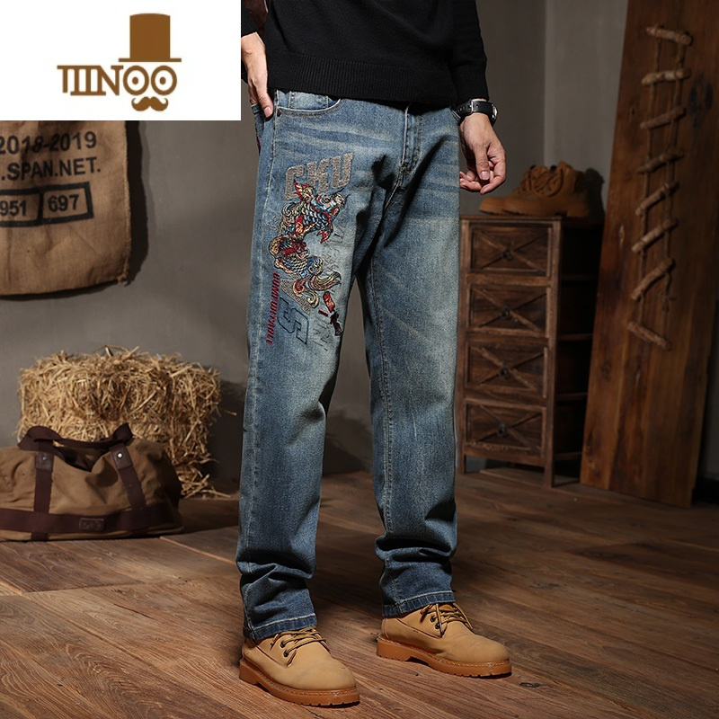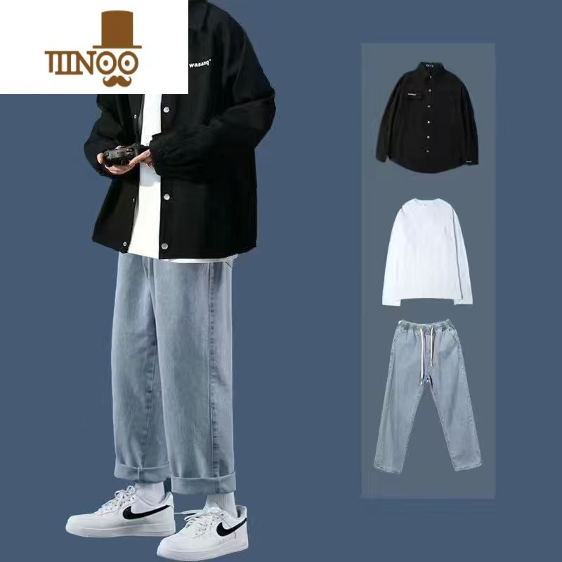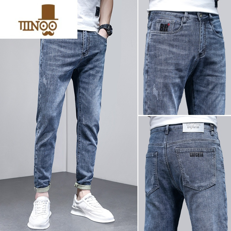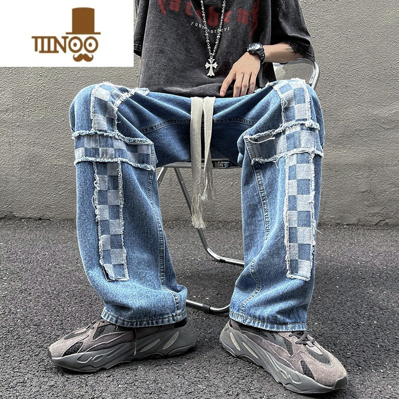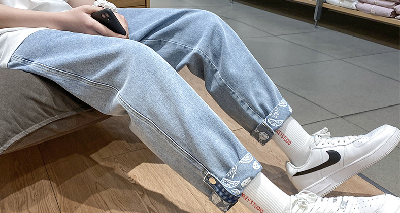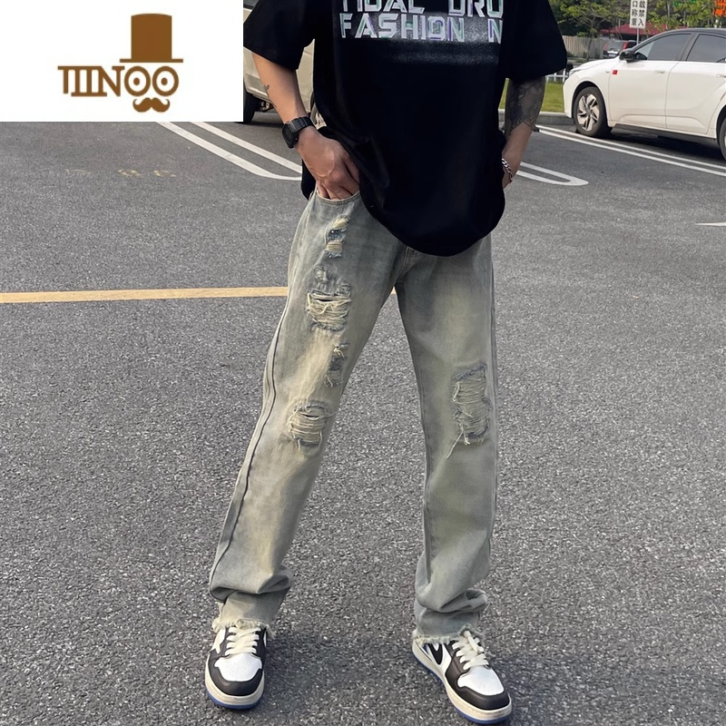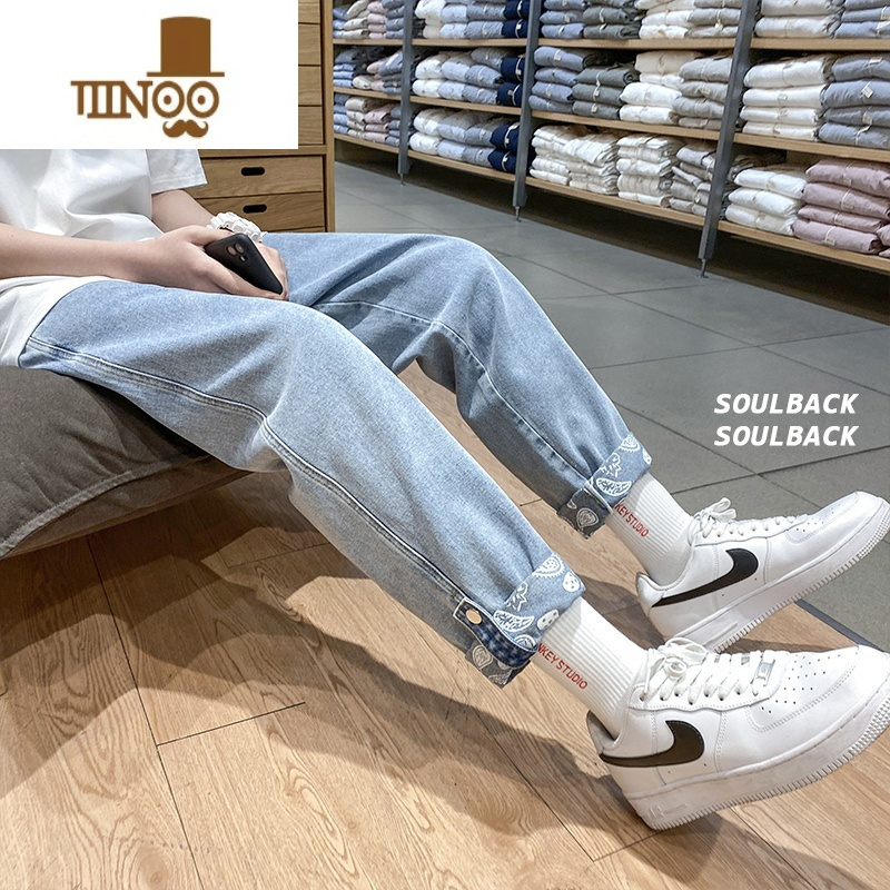 YANXU高街裤子男款ins潮流韩版九分牛仔裤男直筒宽松新款男裤